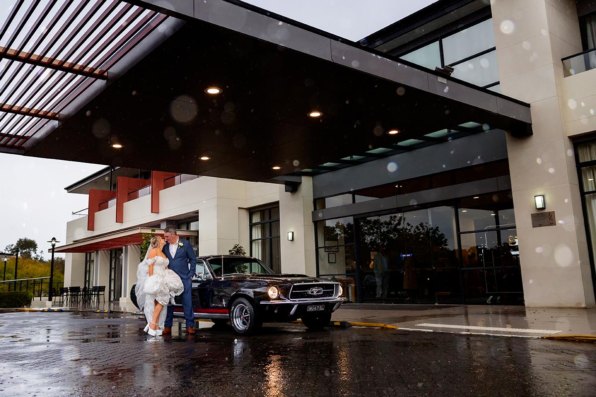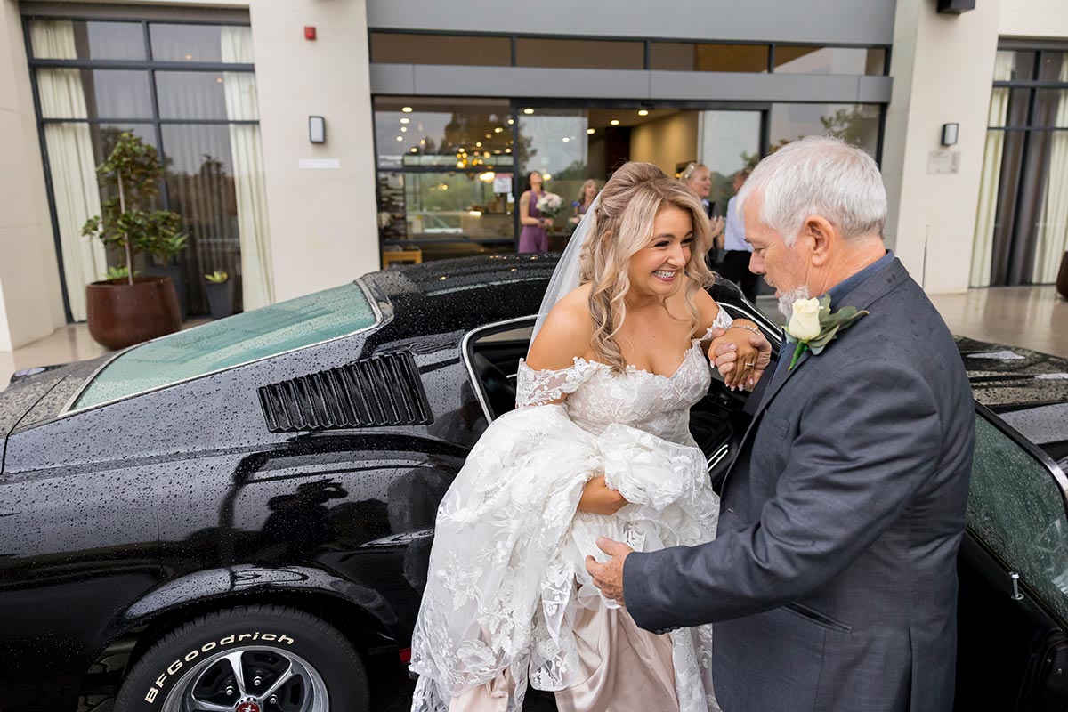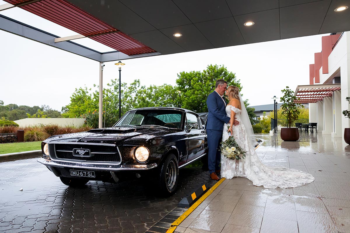 The day started with a bit of rain, which meant we had to move the ceremony indoors. But honestly, it turned out to be so beautiful. The indoor space at Kooindah Waters is really lovely as a backup ceremony plan for when mother nature does not co operate. During the afternoon, the rain finally stopped, and we were able to head outside onto the golf course for photos. The course at Kooindah Waters looked stunning with everything fresh and green from the rain. Katherine and Rob even had a classical Mustang car, which made for some really cool photos out the front.