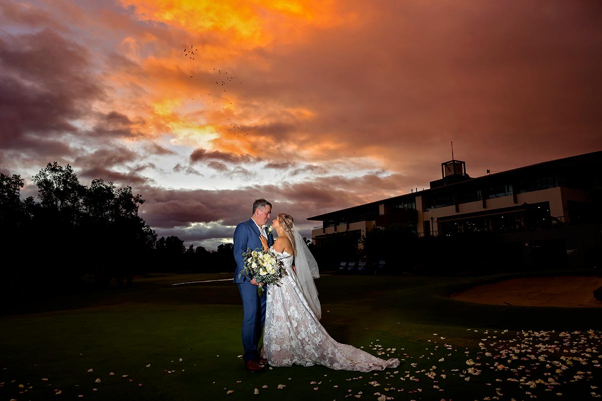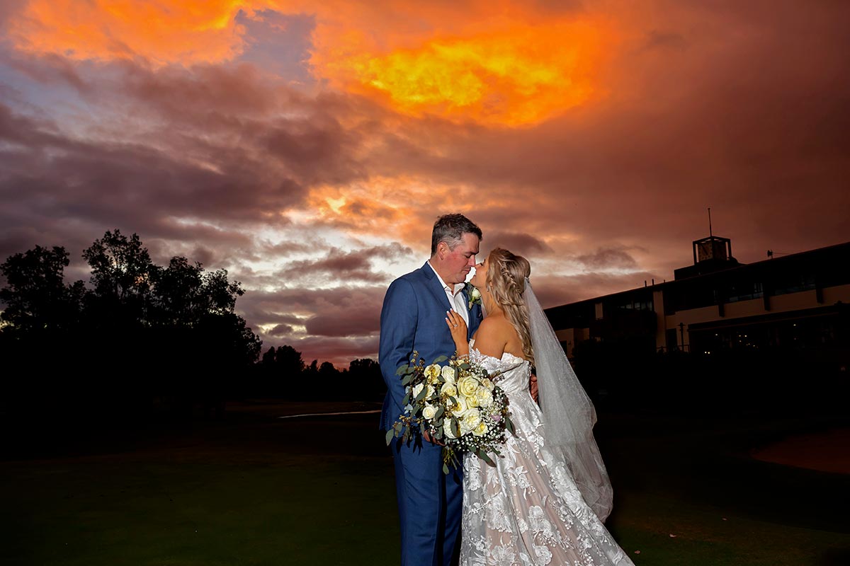 One highlight of the day was definitely the sunset. Just as we were finishing up photos on the course, the sky lit up with the most gorgeous colors. It was the perfect backdrop for the last shots before heading inside for the reception. Katherine and Rob were so amazing to work with, we had so much fun, it was a blast capturing all their special moments. Even with the rain, the day turned out perfectly.